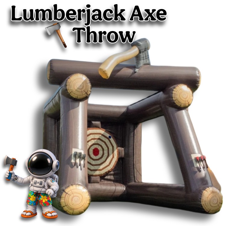 Step into the exhilarating world of the Lumberjack Axe Throw, where precision meets fun! This rental features a safe, inflatable setup that brings the thrill of axe throwing competitions to any party or event. Designed like a rustic log cabin scene, it offers soft foam axes to test your aim without the danger. Perfect for aspiring lumberjacks or anyone looking for a unique and challenging experience, it transforms an ordinary day into an unforgettable adventure.